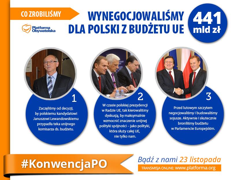 Kiedy patrzę na Janusza Lewandowskiego, siedzi w pierwszym rzędzie, komisarza odpowiedzialnego za budżet europejski, to nie mogę nie wspomnieć, że ta wielka szansa, ten epokowy moment wiąże się dokładnie z tym, co także przy jego pomocy udało się Polsce uzyskać, czy wyśrubować. Mówimy o tych 400 mld złotych, które są podstawą dla tego drugiego wielkiego skoku, tego drugiego otwarcia.